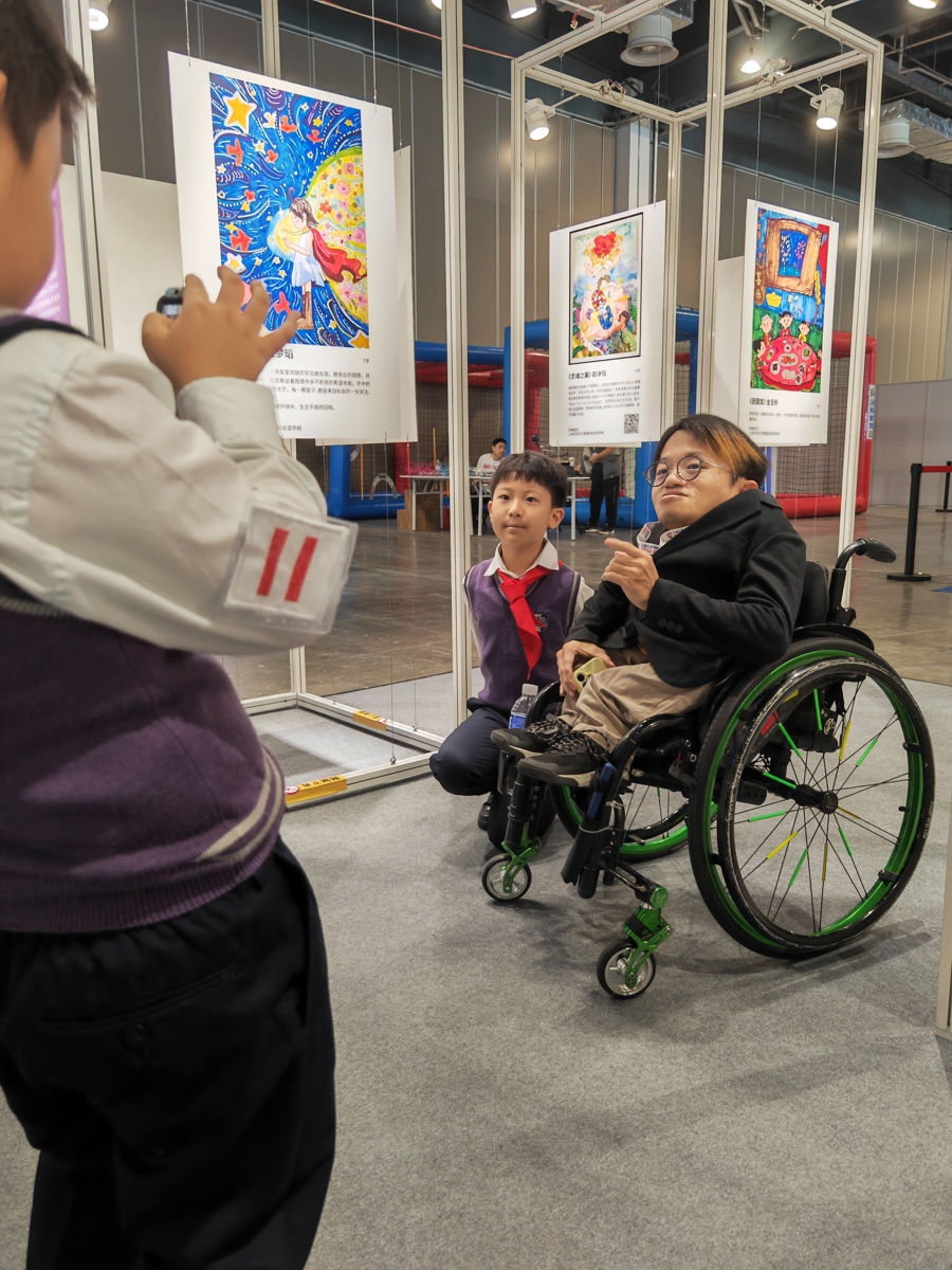 张梓沫和小伙伴现场参与罕见病科普讲座等一系列活动,与翟进这样的罕见病患画家互动合影,对这一特殊群体有了更深理解与共情。小画家们也在画布上表达同一个朴素的愿望:期望更多人能停下脚步,看见、了解并关爱这个“万分之一的”特殊群体。“我长大后想当一名专门看罕见病的医生,因为能看罕见病的医生,比罕见病病人还要罕见。”