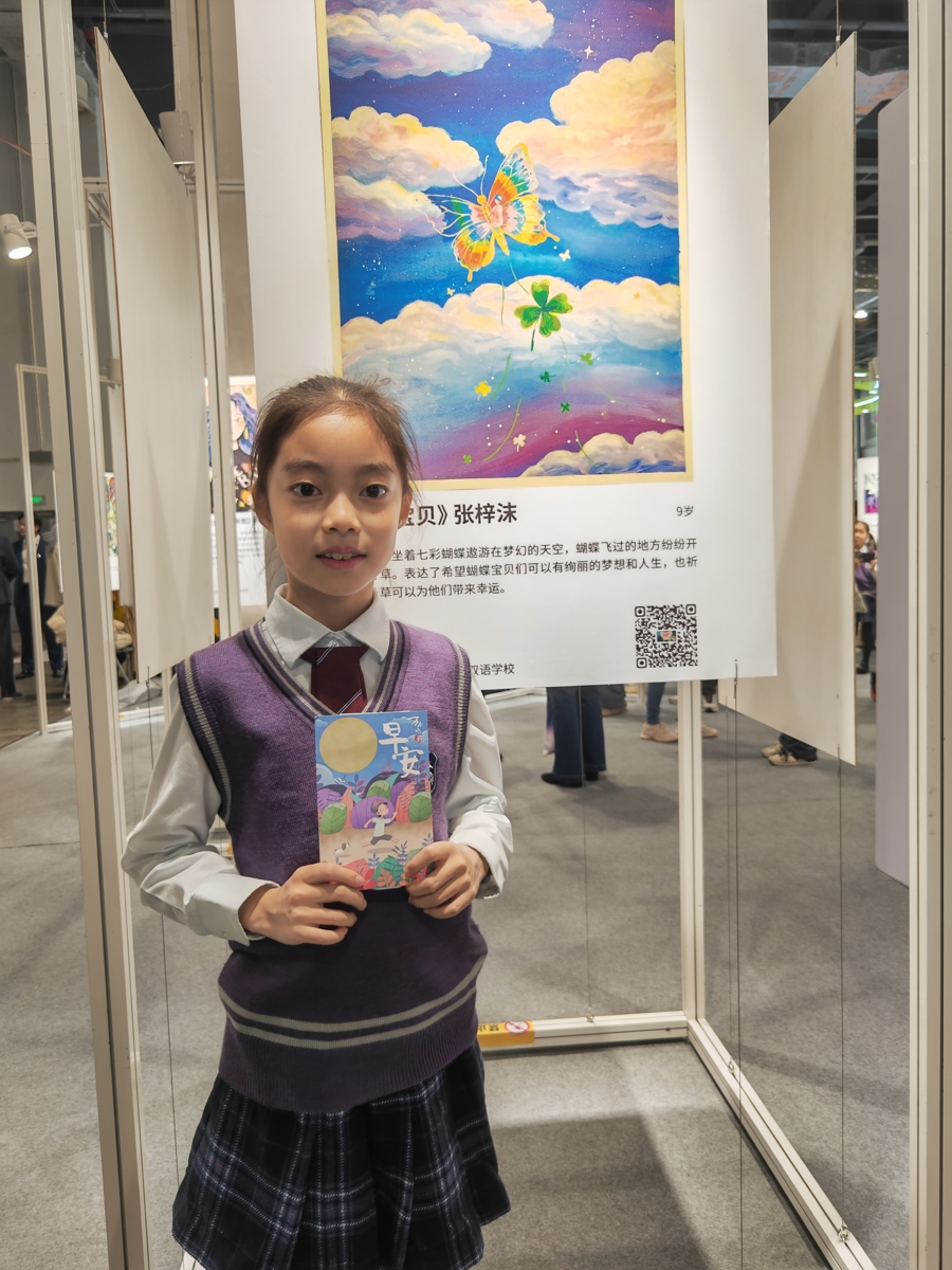 “‘蝴蝶宝贝’就是对大疱性表皮松解症患者的爱称。”来自上海市民办万源城协和双语学校的三年级女生张梓沫,能够准确说出带有皮肤症状的“蝴蝶宝贝”意思。原来,9岁的她不仅是画展志愿讲解员,还基于周密带病作画的故事,创作了油画《蝴蝶宝贝》。今年画展依托上海儿童健康展平台,将罕见病科普自然融入儿童健康教育场景,吸引了沪上多校学生参与甚至参展,共有张梓沫这样的23位学生画家,与病友画家同台展出作品68幅(组)。