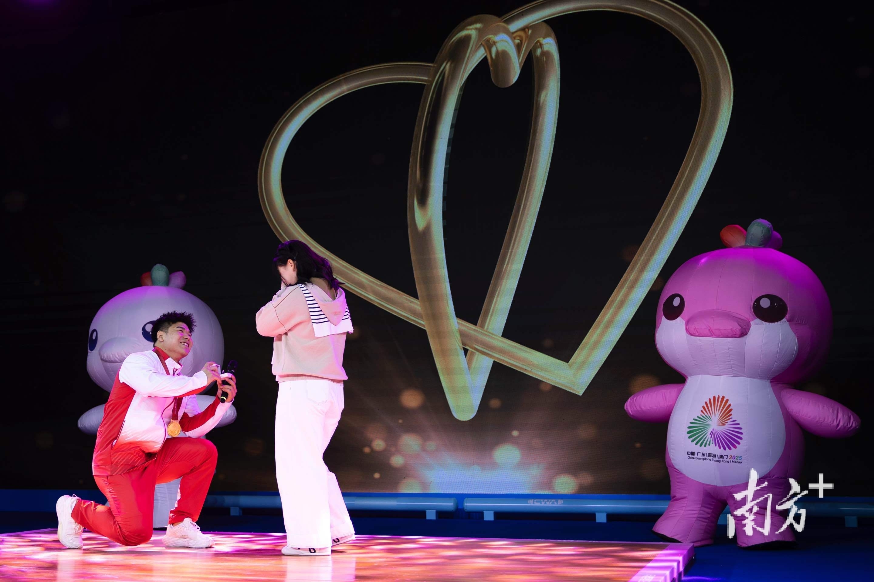 大满贯得主,把举重台变求婚现场